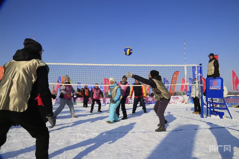 群众冰雪体育乐园洋溢着全民健身的热情氛围。这里既有雪地气排球、亲子运动会、冰上龙舟的赛事活动,还有冰壶、冰盘、冰球、速滑、雪地足球、冰雪匹克球等大众参与性强的传统冰雪项目。还有花样滑冰和群众体育运动表演项目。